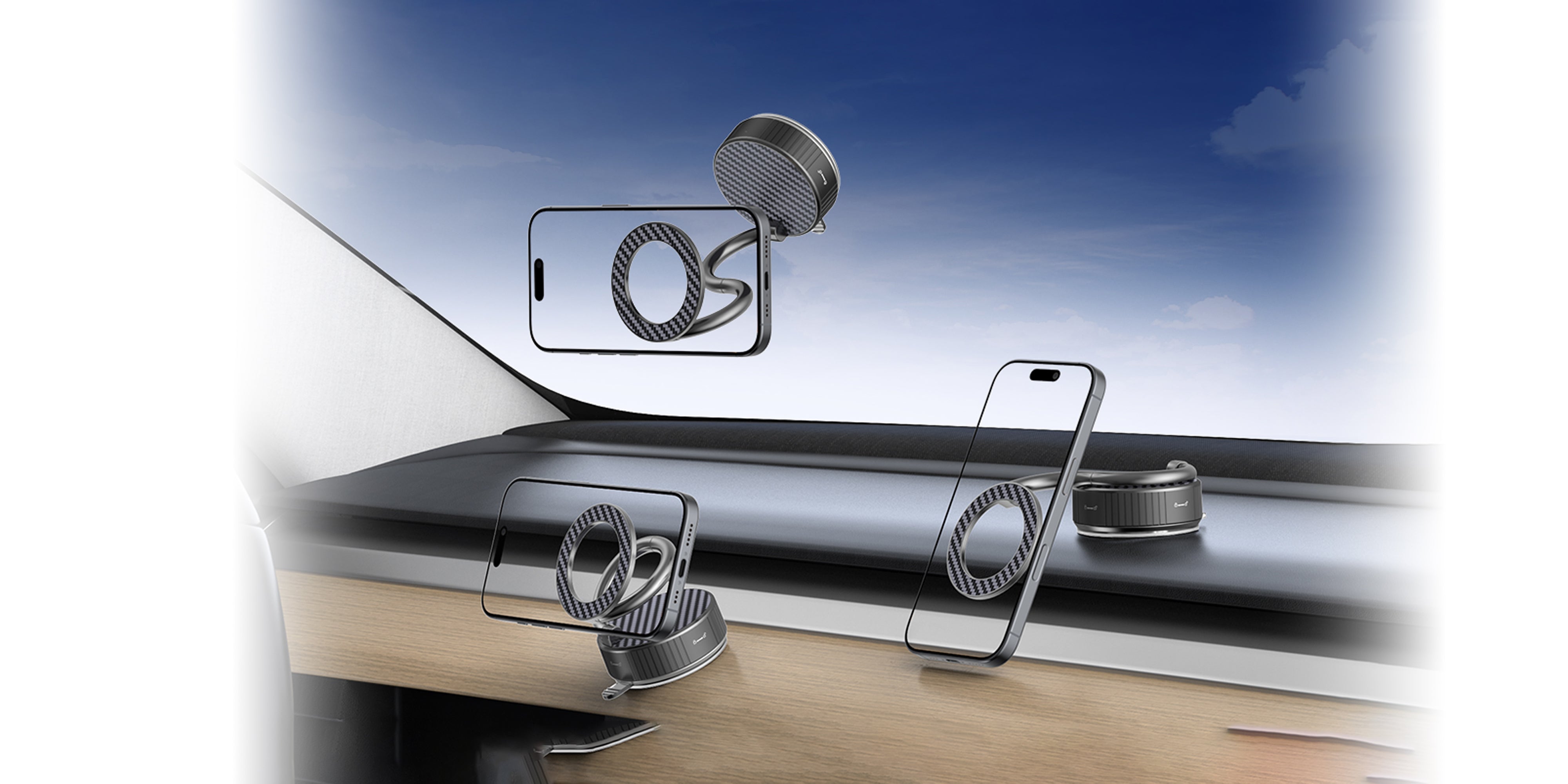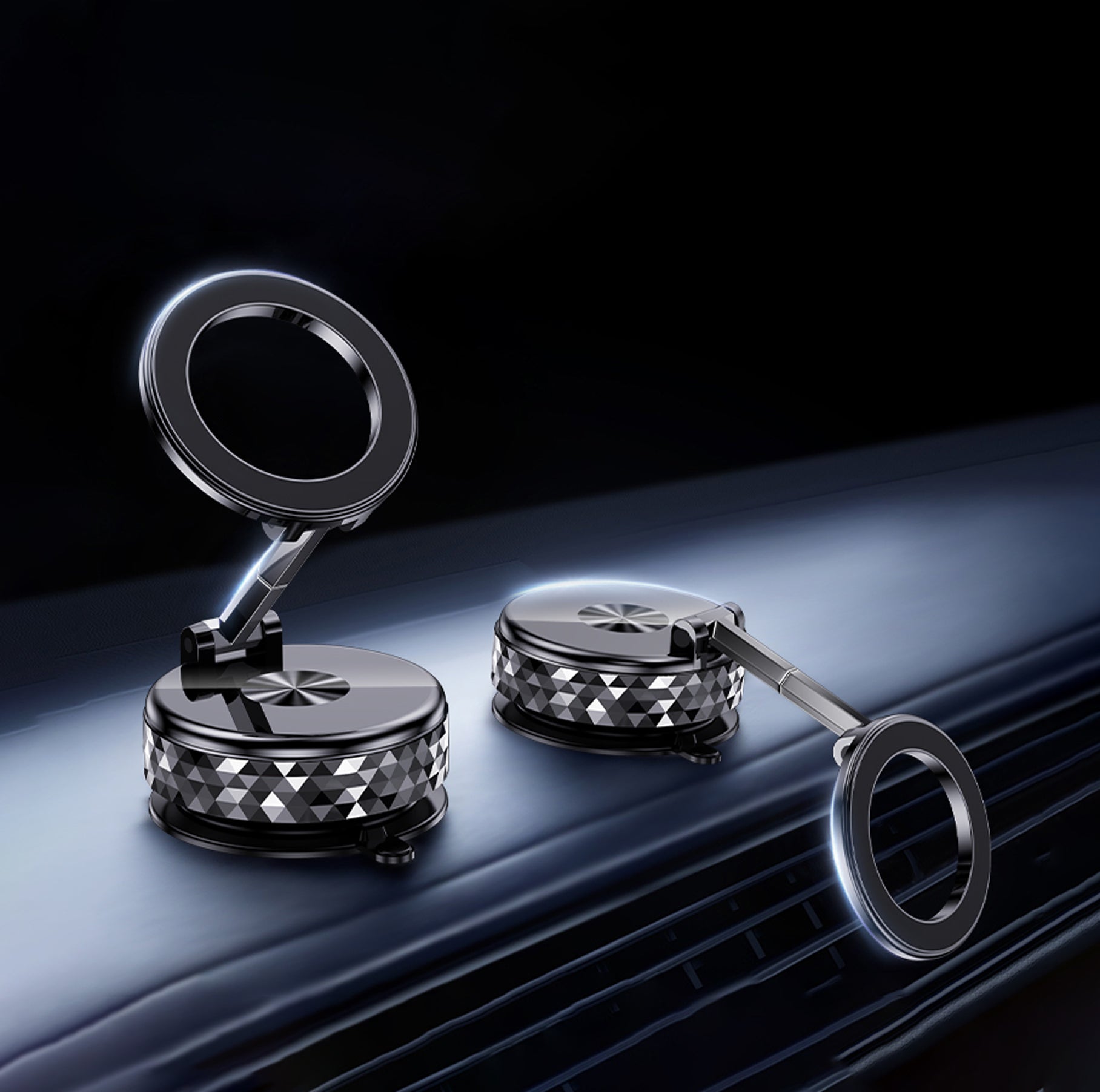 The S08 Magnetic Phone Mount offers the ultimate hands-free experience with its versatile dual attachment system. Featuring powerful vacuum suction that securely adheres to smooth surfaces and built-in strong magnets for instant device mounting, this holder ensures reliable stability during travel. Its full 360-degree rotation allows perfect viewing angles in both portrait and landscape orientations. Compatible with all magnet-enabled phones and cases, the S08 provides convenient one-handed operation while driving. The compact design maintains a low profile when not in use, making it an essential car accessory for navigation, video calls, and safe driving.
